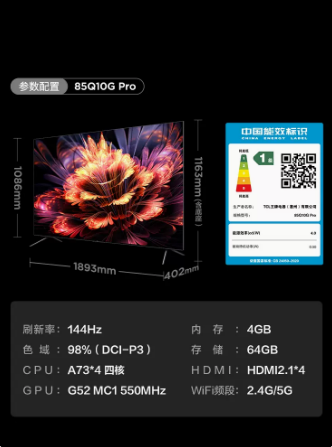 • TCL 85Q10G Pro 85英寸Mini LED量子点高清智能全面屏网络电视机