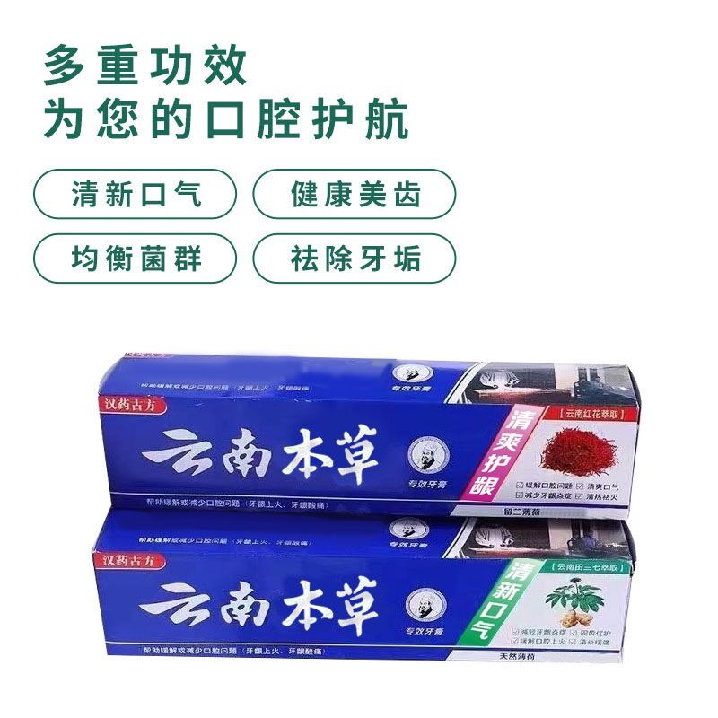 • 云南牙膏亮白去黄清热除口臭去牙垢清新口气去烟渍中药家庭实惠装