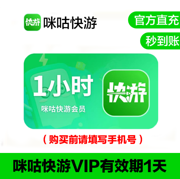 【直冲】咪咕快游会员1天有效期时长1小时/时长内无限畅玩游戏